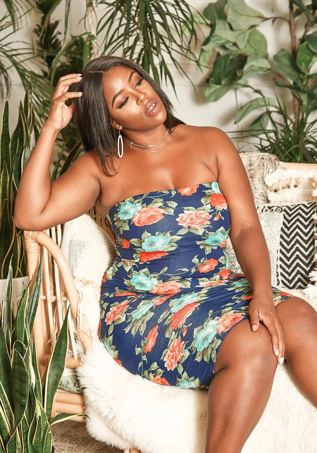 Asoph Plus Size Antique Floral Print Bodycon Tube Dress
