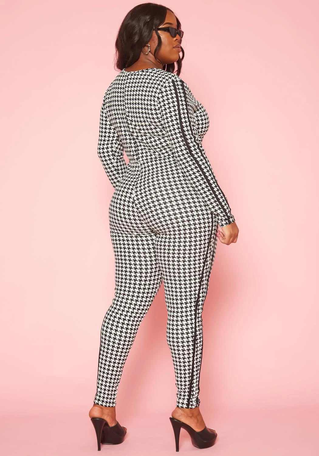 Plus Size Houndstooth Plaid Jumpsuit