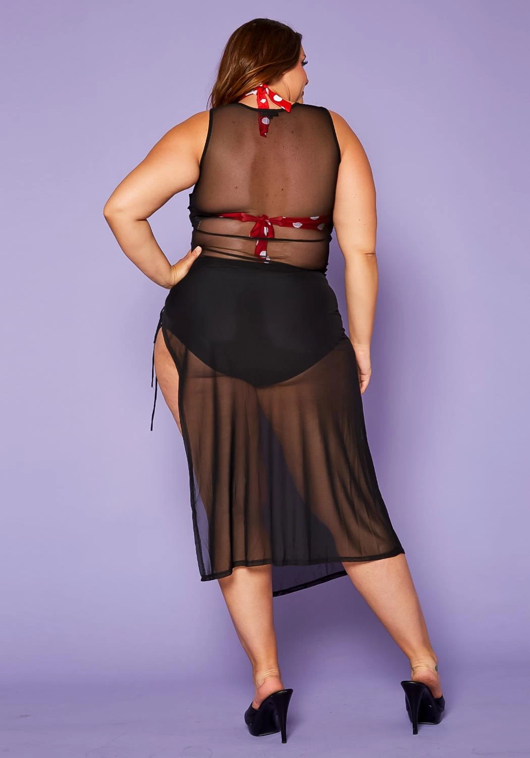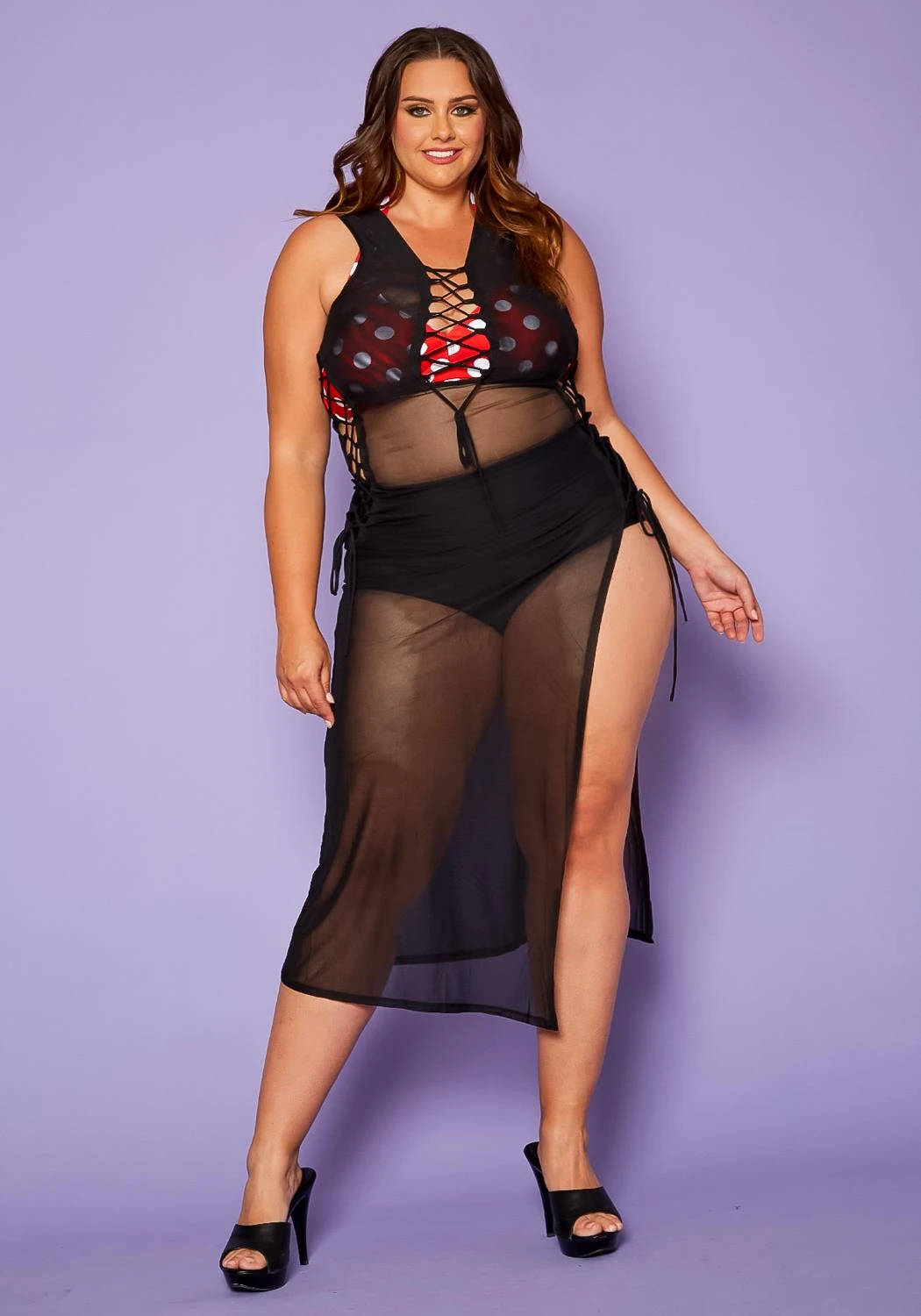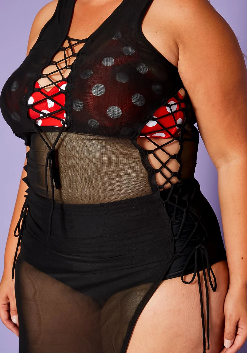 Plus Size Lace Up Sheer Tank Midi Dress Cover Up