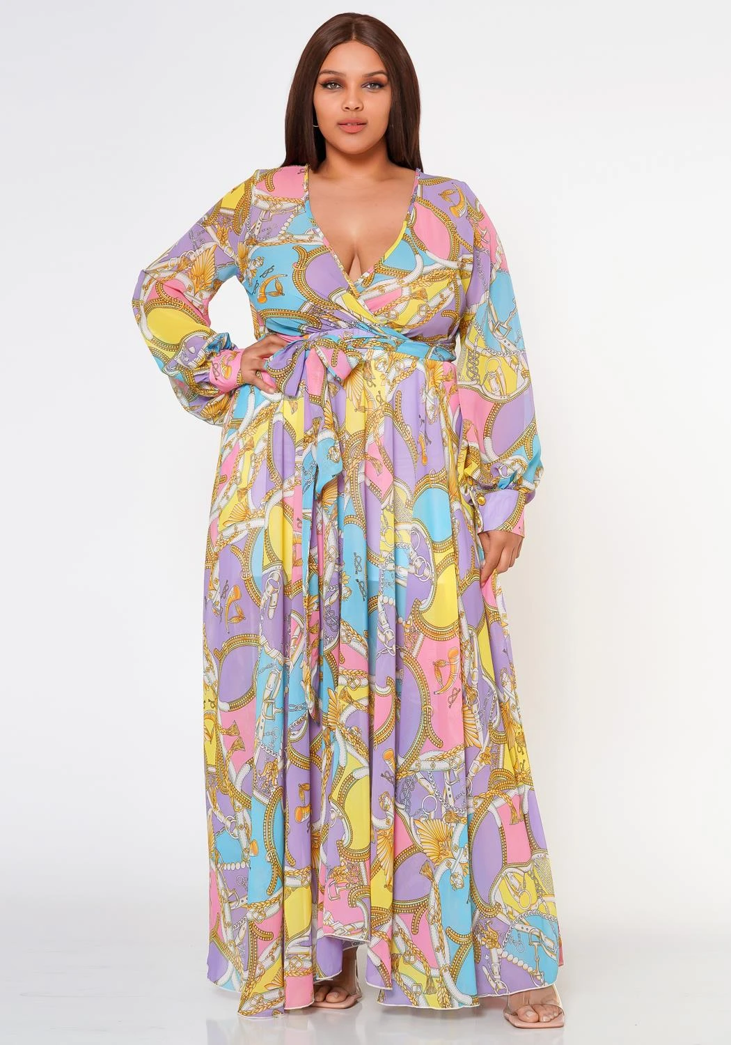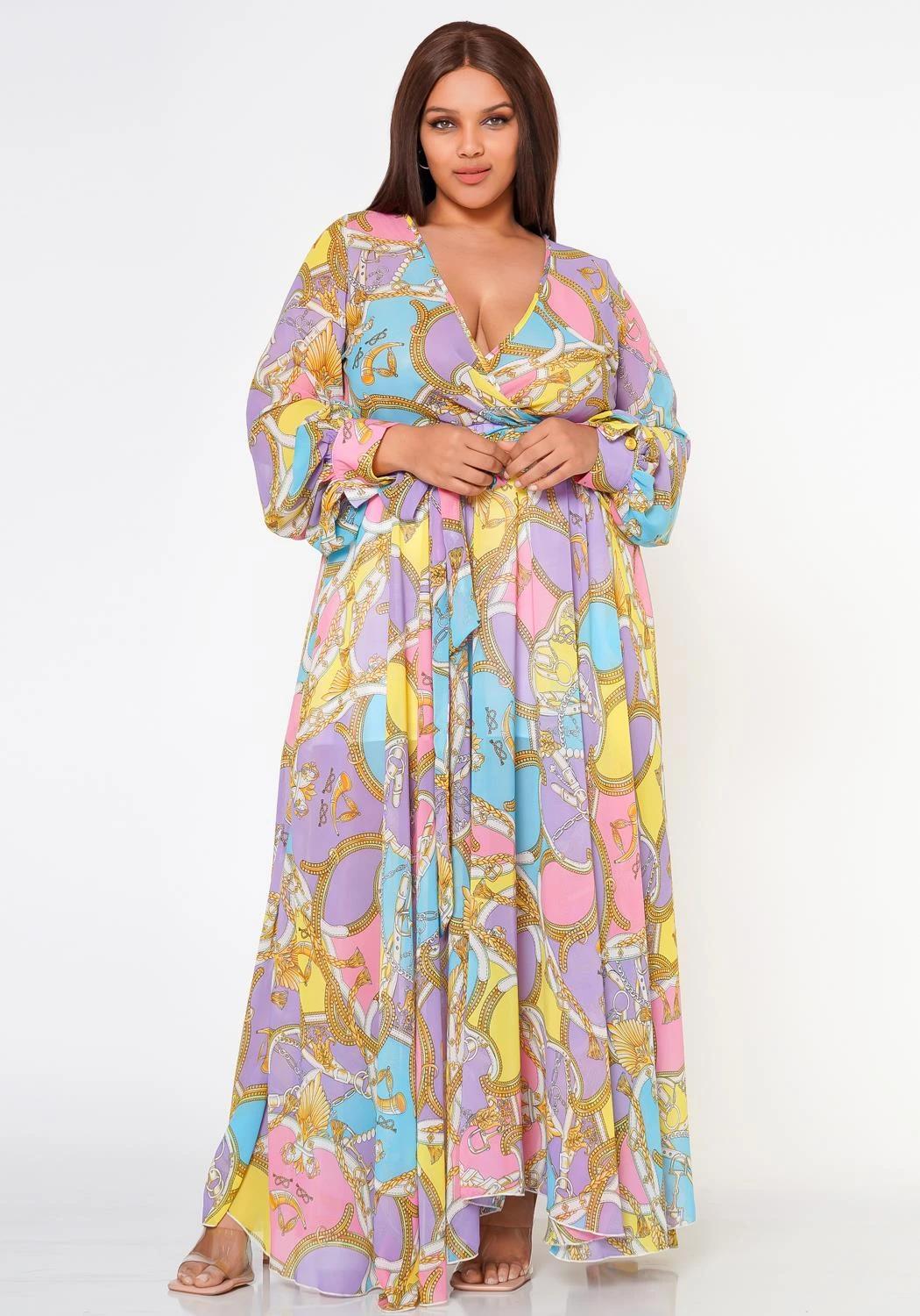 Plus Size Multi Chainlink Pattern Fit & Flare Maxi Dress