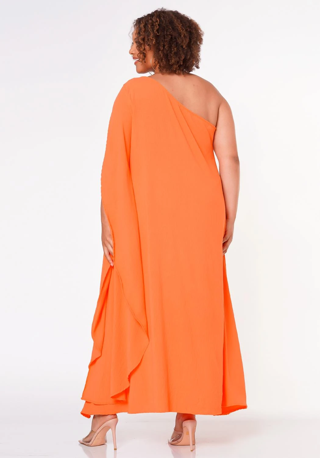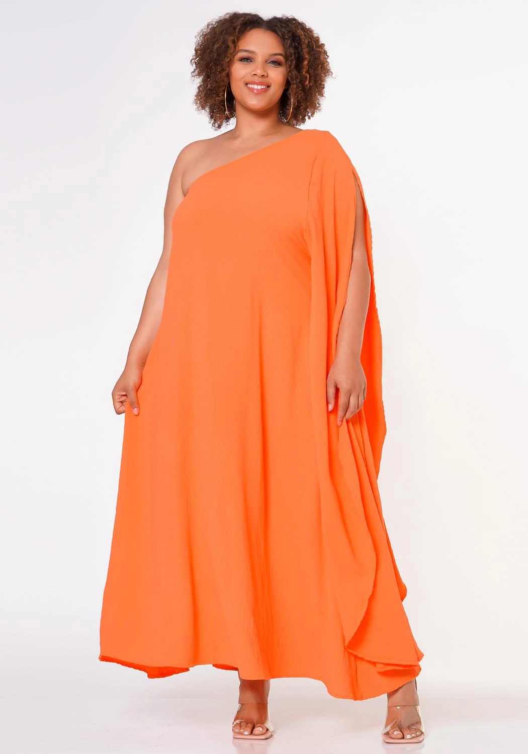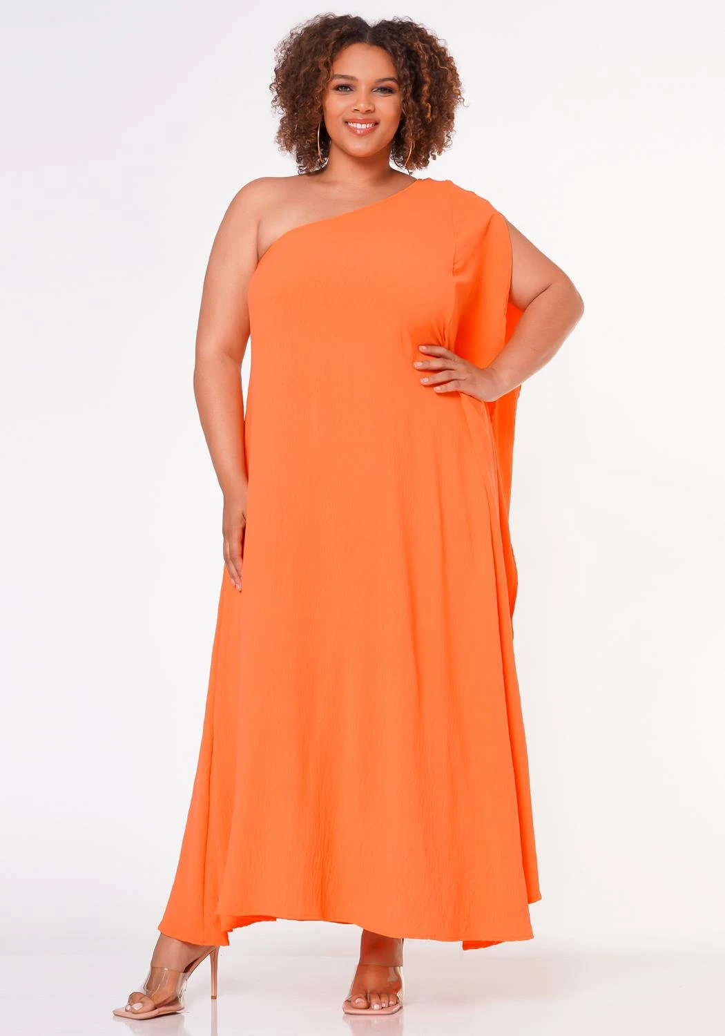 Effortless maxi dress in casual one shoulder design and a v-open cut flare detail for an extra ascent.