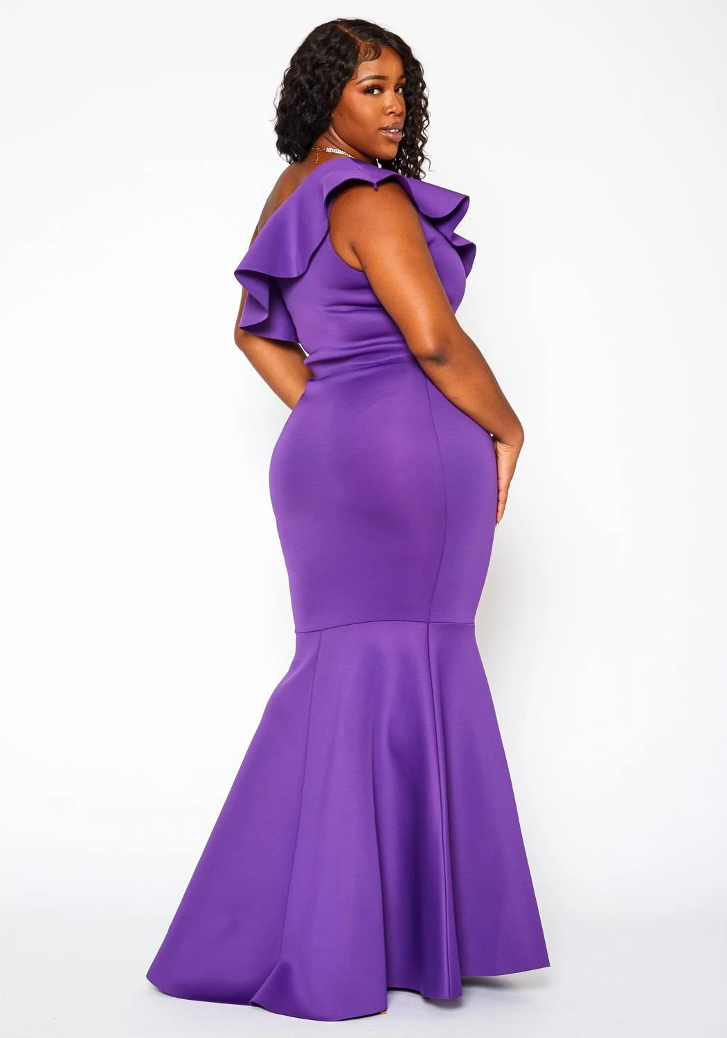 Dress to impress in our perfect special occasion plus size women’s maxi gown! Features one shoulder ruffle hem and a sleeveless style.