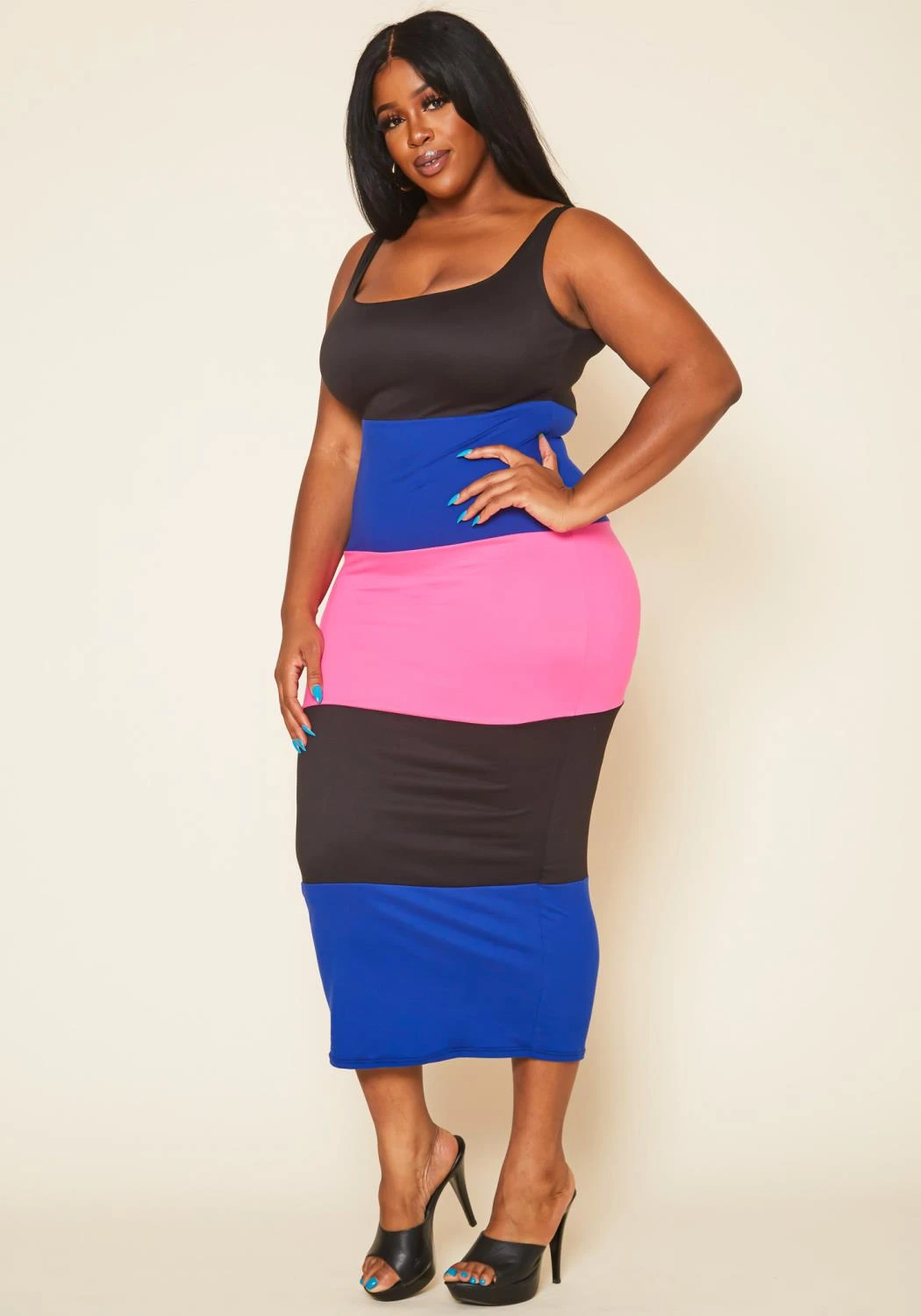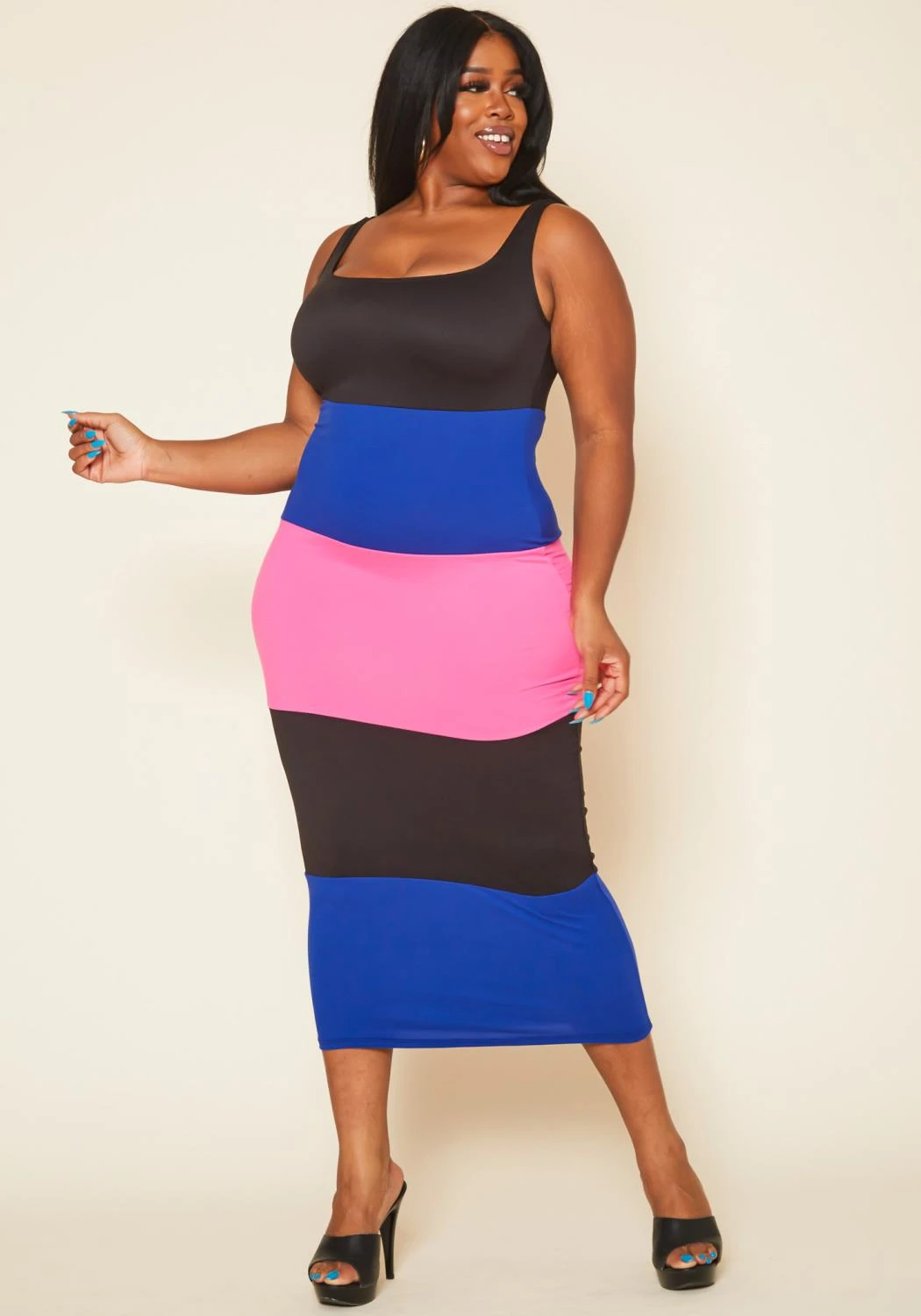 Plus Size Striped Color Block Midi Dress